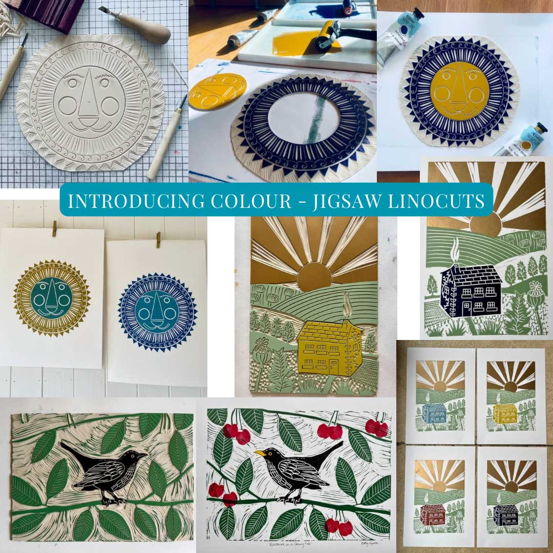 This 3.5 hour workshop is aimed at people who have attended one of my Introduction to Linocut Printmaking workshops, or who have some experience with linocut printmaking. You will be learning how to use the jigsaw technique to create a linocut print with multiple colours.